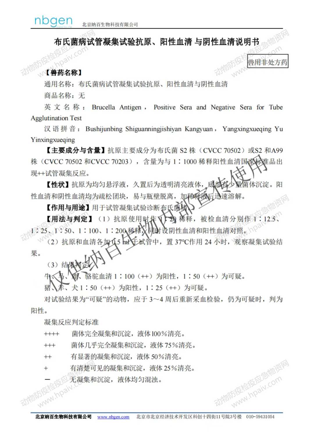 布氏菌病试管凝集试验抗原、阳性血清 与阴性血清(纳百生物)