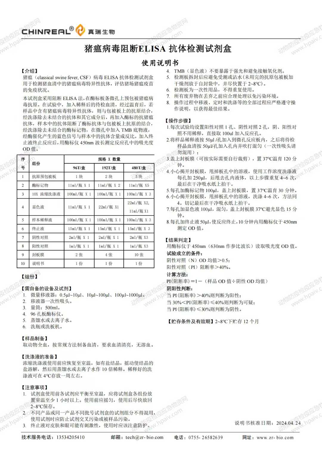 猪瘟病毒阻断ELISA 抗体检测试剂盒(真瑞)