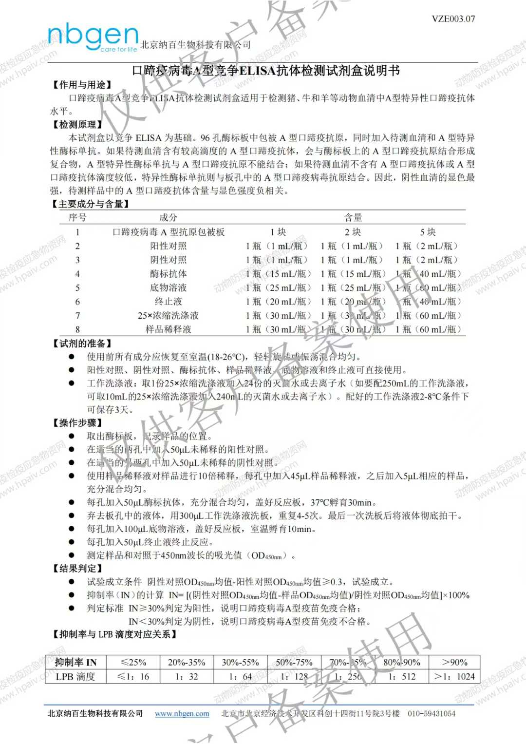 口蹄疫病毒A型竞争ELISA抗体检测试剂盒(纳百)
