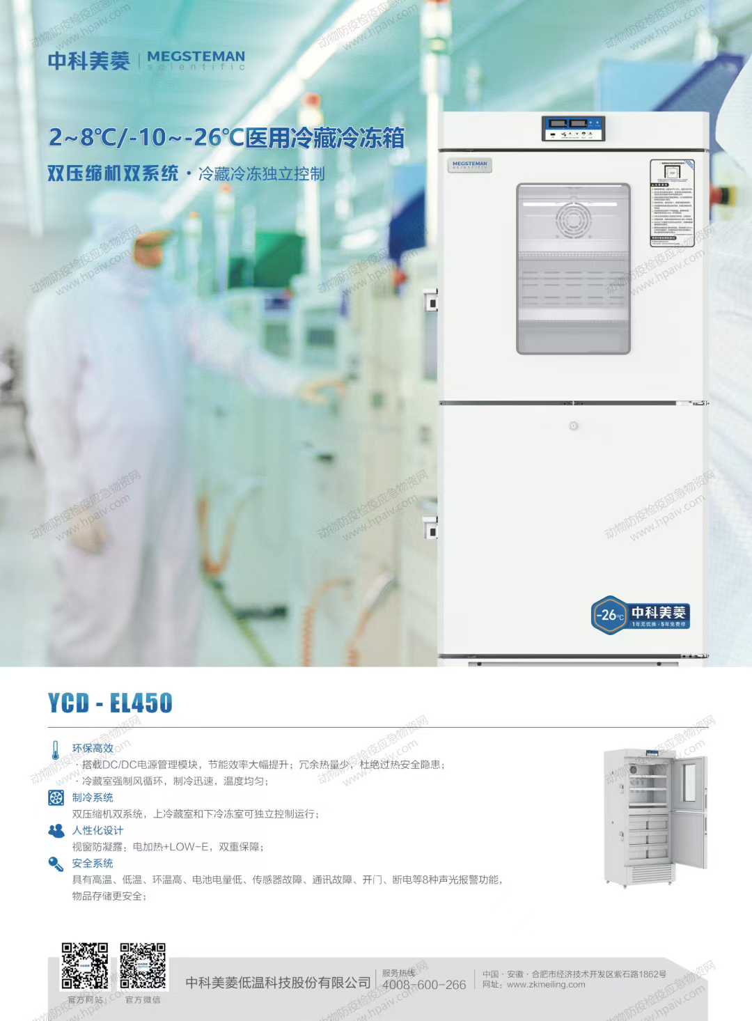 2~8°℃-10~-26℃医用冷藏冷冻箱(中科美菱) YCD