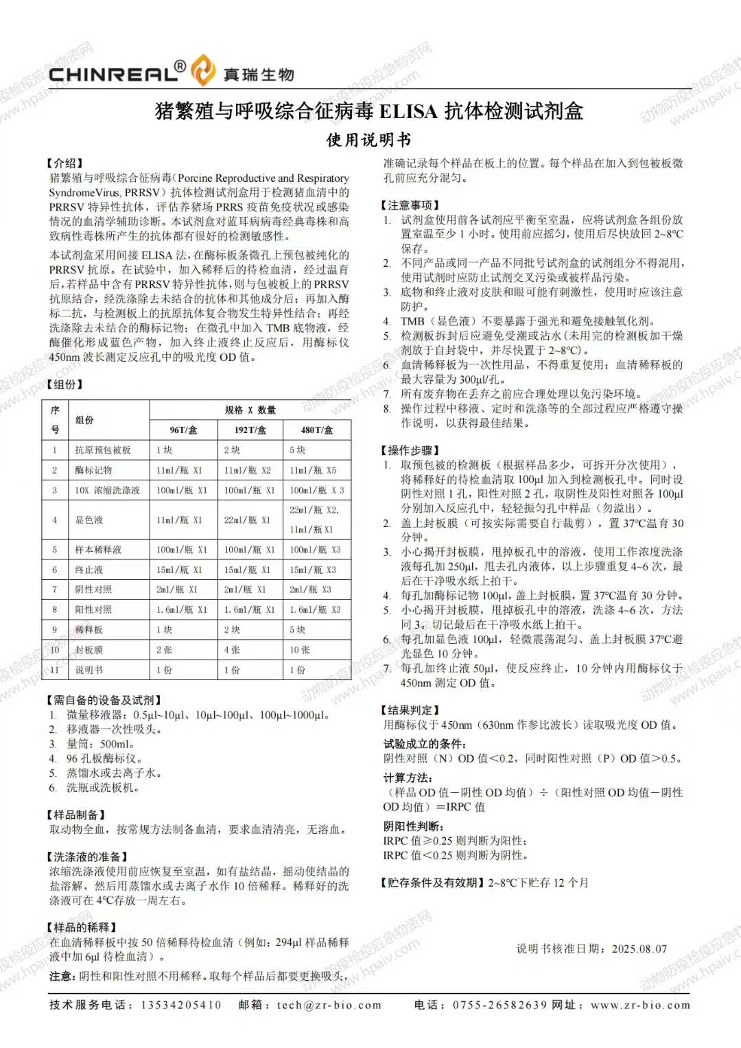 猪繁殖与呼吸综合征病毒 EISA 抗体检测试剂盒(真瑞)