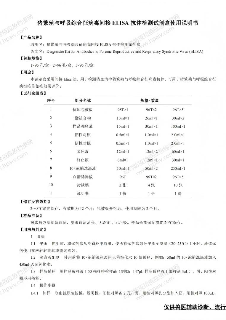 猪繁殖与呼吸综合征病毒间接ELISA 抗体检测试剂盒(亿森宝